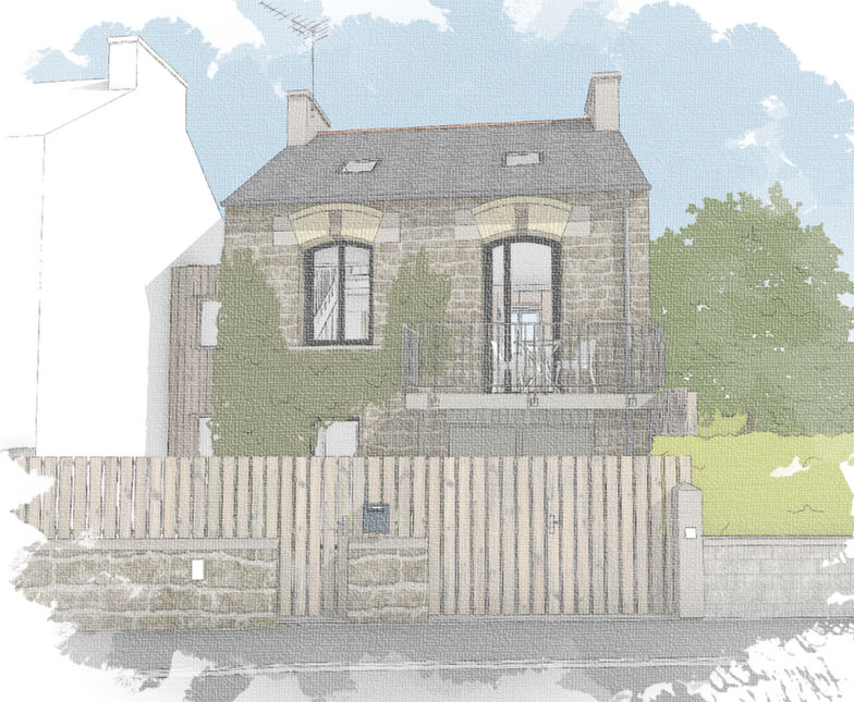 Cette maison malouine de 110m² est complètement restructurée. L'objectif étant de créer un espace de vie agréable et lumineux au R+1 en profitant du volume inoccupé des combles. Cet espace est prolongé sur l'extérieur par un bacon au sud.